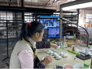 系統不僅實現“一師多班”的高效教學模式,還顯著提升校企合作的效率。在彩繪課教學中,從化陶藝非遺老師通過系統精準示范上色步驟,同步講解技法要點,讓學生們在學習非遺技藝的同時,也直觀了解工廠陶瓷生產車間的實際情況。
